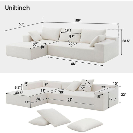 109x68" Modular Sectional Living Room Sofa Set, Modern Minimalist Style Couch, Upholstered Sleeper Sofa for Living Room, Bedroom, Salon, 2 PC Free Combination, L-Shape, White