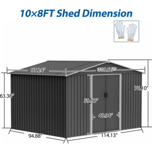 10X8 FT Outdoor Storage Shed, All Weather Metal Sheds withLockable Doors, Tool Shed for Garden, Patio, Backyard, Lawn, Grey