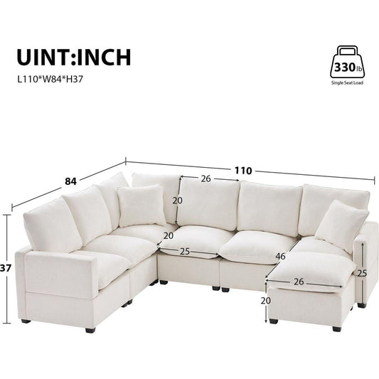 110x57" Modern U Shape Modular Sofa, 6 Seat Chenille Sectional Couch Set with 2 Pillows Included, Freely Combinable Indoor Funiture for Living Room, Apartment, Office, 2 Colors