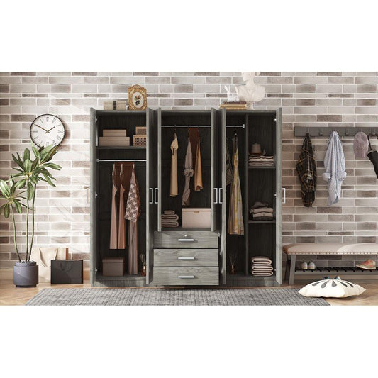 6-Doors Wooden Wardrobe Storage for Bedroom, with Big Drawers, Gray