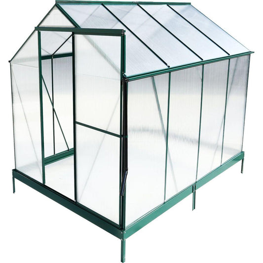 6.3'x6.2'x7' Polycarbonate Greenhouse, Heavy Duty Outdoor Aluminum Walk-in Green House Kit with Rain Gutter, Vent and Door for Backyard Garden, color green