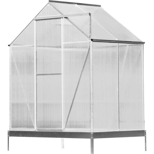 6.3'x4.2'x7' Polycarbonate Greenhouse, Heavy Duty Outdoor Aluminum Walk-in Green House Kit with Rain Gutter, Vent and Door for Backyard Garden, color aluminium