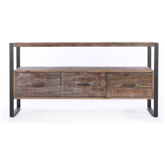 60 inch Reclaimed wood Media TV Console table with 3 Drarwer, Open Shelf, Antique finish