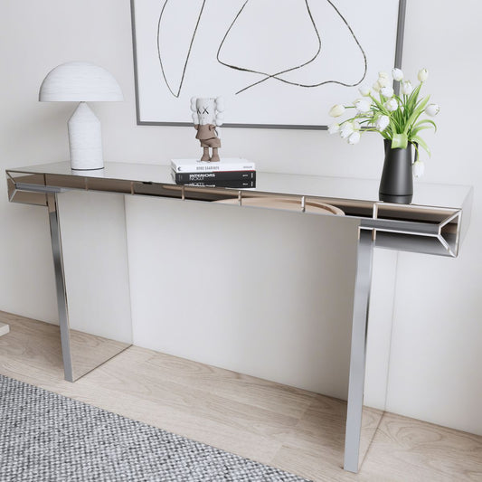 60 Inches Luxury Full-Length Mirror Console Table with Fluted Tempered Glass, Entryway Mirrored Sofa Table, Light Luxury Style, Scratch-Resistant, Reinforced Packaging