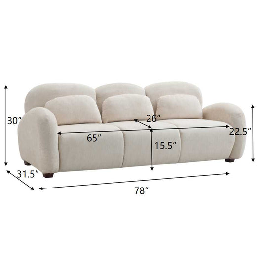 78 in. Modern 3 Seater Boucle Sofa Upholstered Couch with 3 Pillows for Bedroom, Office, Apartment, Beige