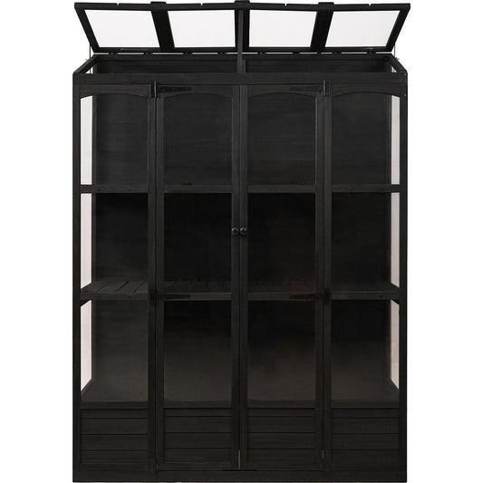 78-inch Wooden Greenhouse Cold Frame with 4 Independent Skylights and 2 Folding Middle Shelves, Walk-in Outdoor Greenhouse, Black