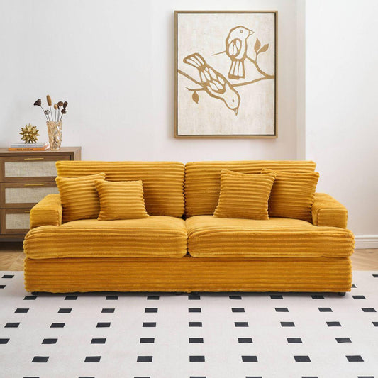 79.3 'long, corduroy sofa with 4 matching pillows, stylish design spacious and comfortable 3-seater sofa suitable for modern living room, orange color