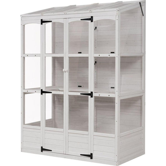 78-inch Wooden Greenhouse Cold Frame with 4 Independent Skylights and 2 Folding Middle Shelves, Walk-in Outdoor Greenhouse, White