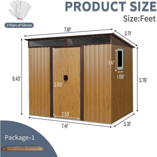 8 ft x 6 ft Outdoor Metal Storage Shed with Window and Transparent plate for Garden, Lawn (Coffee)
