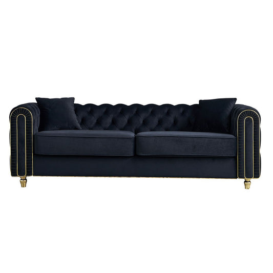86'' W Luxury Modern Tufted Sofa with 2pcs of toss pillows for Living Room ,Bedroom,Black Color