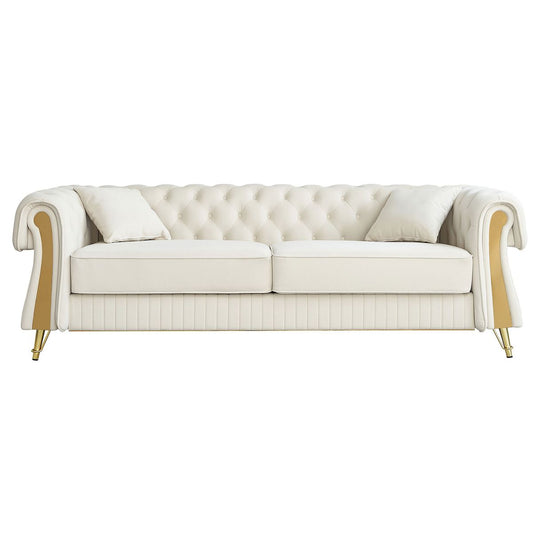 89''W Chesterfield Modern Tufted Velvet Living Room Sofa with Two Seat Cushions and Two Toss Pillows,Beige