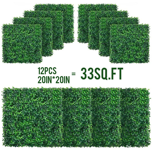 12pieces of 20 inch x 20 inch lawn wall panels, artificial lawn wall panels, green background decoration, boxwood fence wall panels, party, wedding, indoor, backyard, Christmas decoration, 33sq.FT