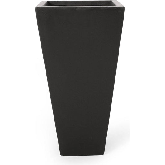 13" Outdoor Modern MGO Small Cast Stone Planter, Black