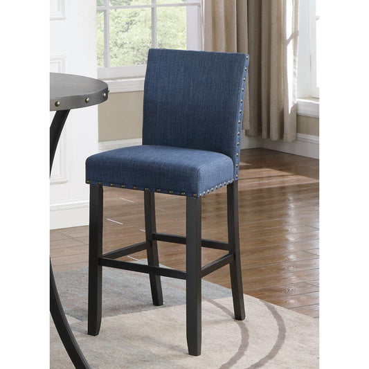 Biony Fabric Bar Stools with Nailhead Trim, Set of 2, Blue