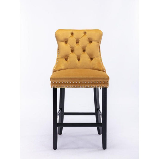 Contemporary Velvet Upholstered Barstools with Button Tufted Decoration and Wooden Legs, and Chrome Nailhead Trim, Leisure Style Bar Chairs,Bar stools, Set of 2 (Golden)