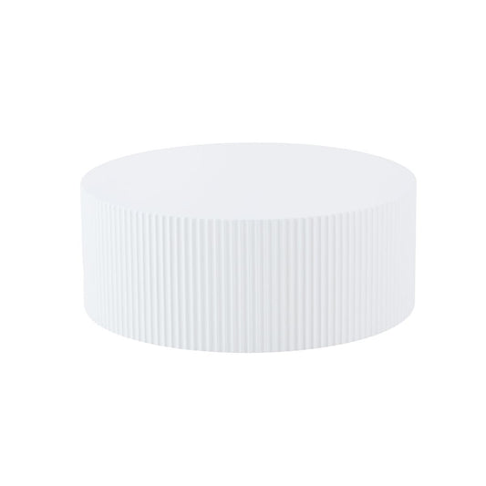 Contemporary Round Coffee Table with Handcrafted Relief, φ35.43inch, Whtie
