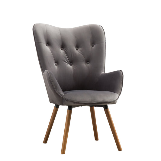 Doarnin Contemporary Silky Velvet Tufted Button Back Accent Chair, Gray
