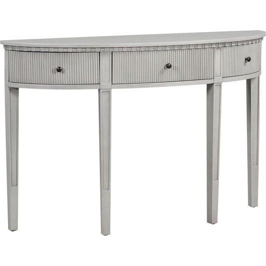 Distinctive Features of Pine Veneer Console Table with Vertical Stripe Drawer Fronts and Four Legs