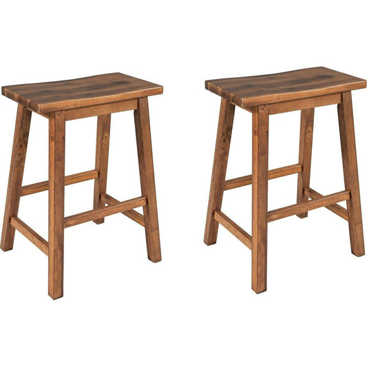 Farmhouse Rustic 2-piece Counter Height Wood Kitchen Dining Stools for Small Places, Walnut