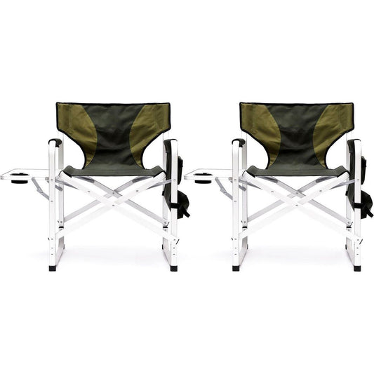 2-piece Padded Folding Outdoor Chair with Side Table and Storage Pockets,Lightweight Oversized Directors Chair for indoor, Outdoor Camping, Picnics and Fishing,Green
