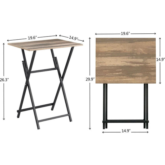 2-Piece Folding TV Tray Table Noassembly Required Portable Sofa Side Table, Industrial Snack Table for Small Spaces, Space-Saving Easy to Fold Wood Rustic Brown and Black