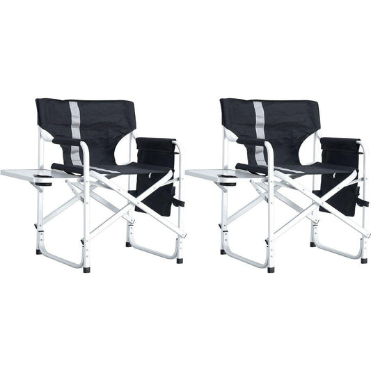 2-piece Padded Folding Outdoor Chair with Side Table and Storage Pockets,Lightweight Oversized Directors Chair for indoor, Outdoor Camping, Picnics and Fishing,Black/Grey