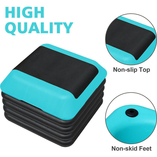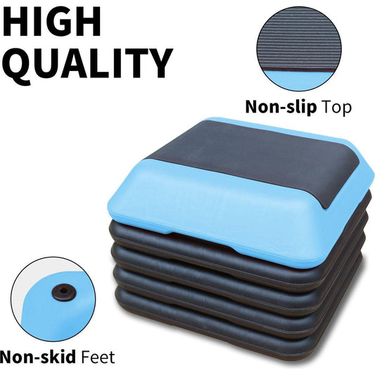 Height-Adjustable Step Aerobics Platform Fitness Equipment Stepper Trainer Exercise Step Platform with 4 Riser Blue