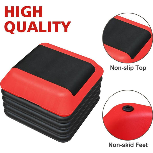 Height-Adjustable Step Aerobics Platform Fitness Equipment Stepper Trainer Exercise Step Platform with 4 Riser Red