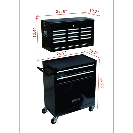 High Capacity Rolling Tool Chest with Wheels and Drawers, 8-Drawer Tool Storage Cabinet--BLACK