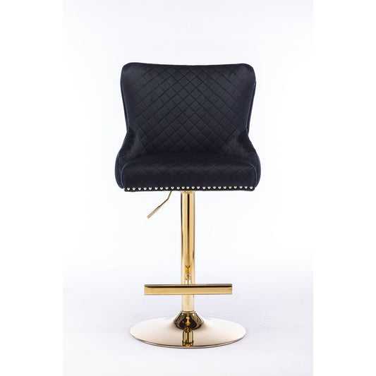 Hengming Velvet bar chair stool one-piece set, adjustable height, diamond lattice against the back to pull the lion's head with zipper decoration,set of 1