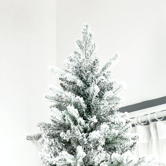 HOMCOM 9ft Unlit Snow-Flocked Slim Pine Artificial Christmas Tree with Realistic Branches and 1084 Tips