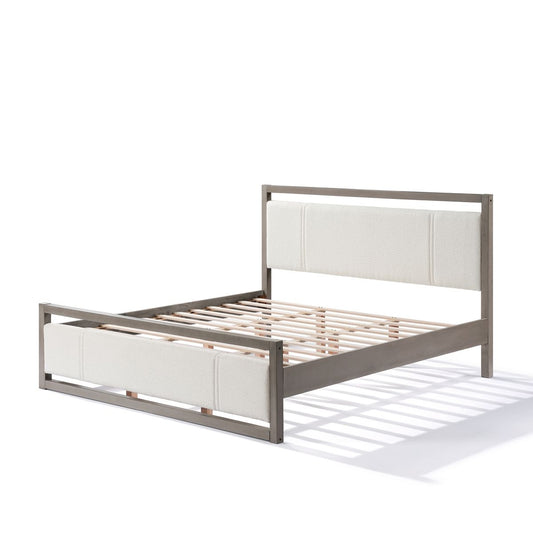 King Bed with Ivory Boucle fabric Headboard, Wood Frame