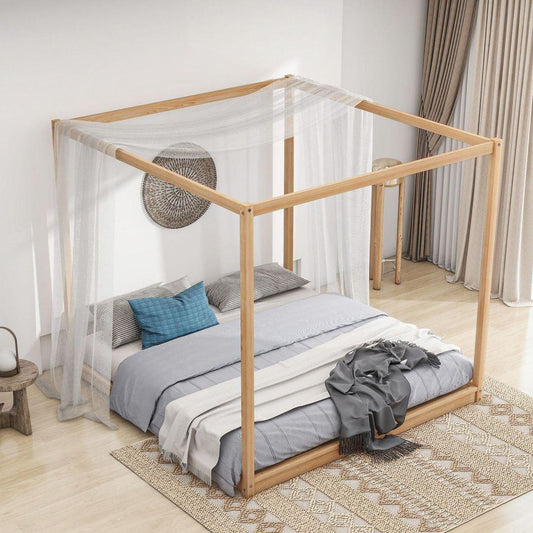 King Size Canopy Platform Bed with Headboard and Support Legs, Grey Wash