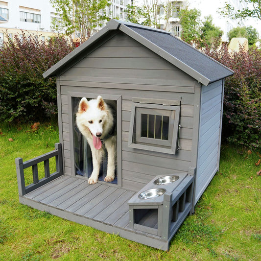 Large balcony doghouse, 44.2' long x 44.6' wide x 44.6' high solid wood asphalt roof dog house for large dogs with large terrace, weatherproof large dog house,