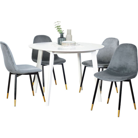 Lassan Contemporary 5-Piece Dining Set, White Round Dining Table with 4 Chairs