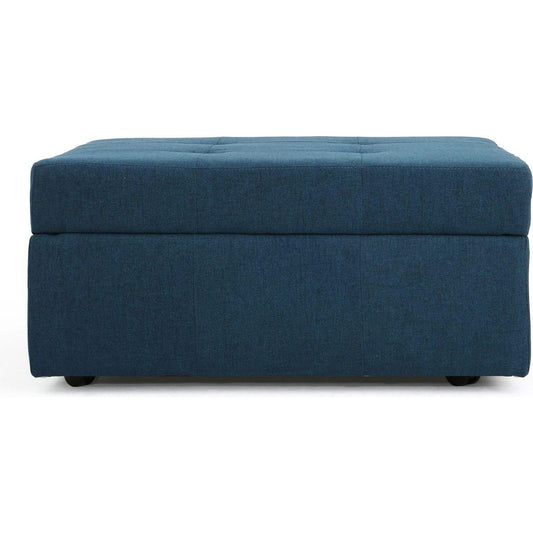 Large square storage stool with two storage doors, footstool for living room Studded mid-century modern coffee table, black PU leather