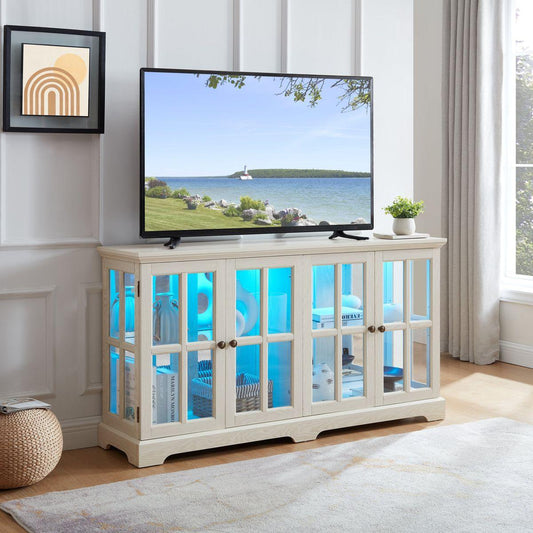 LED Strip Light Two Door Glass Cabinet Glass Display Cabinet with 4 Shelves, White