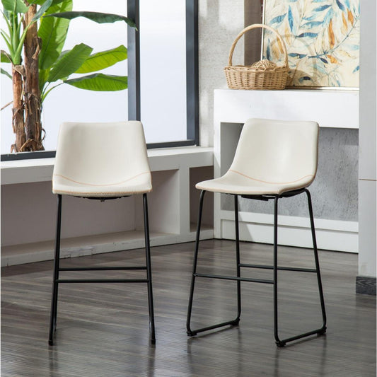 Lotusville Vintage PU Leather Barstools, Set of 2, White