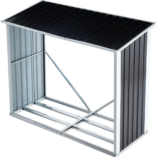 Log Storage Shed, Log Holder with Roof, Log Storage Shed, Firewood Rack for Backyard Garden Patio Porch, Anthracite Galvanized Steel 70.9"