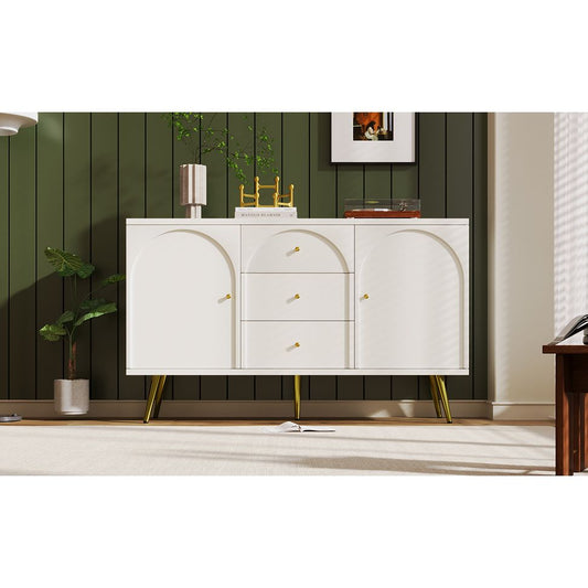Metal foot three drawer two door dining cabinet, combining high-quality wood and metal, simple style, multifunctional storage cabinet, suitable for storage in dining rooms, living rooms, and kitchens