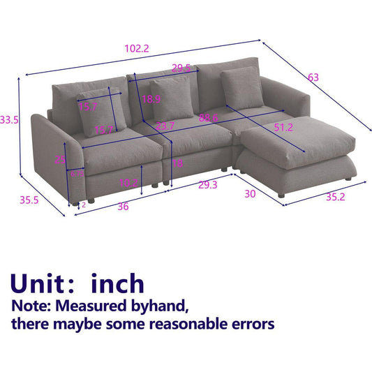 MH102.2 Inch Combination Sofa Modular Sofa with Ottoman, plastic leg,Three Cushions and Three Pillows for Living Room, Apartment, Studio L-Shaped Sofa Sleeper Comfort Upholstered Furniture,black