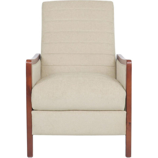 Mid Century Modern Fabric Channel Stitch Wood Pushback Recliner