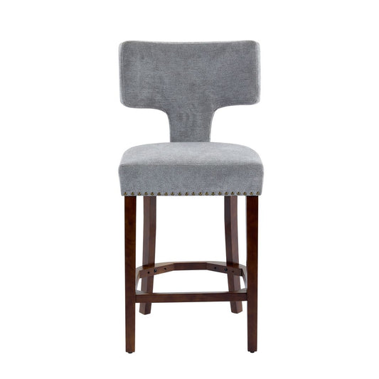 Mid Century Modern Counter Height Bar Stools Set of 2, Farmhouse Linen Fabric Upholstered Accent Chair Curved Backrest with Copper Nails around,Kitchen Chairs with Hardwood Frame, Gray