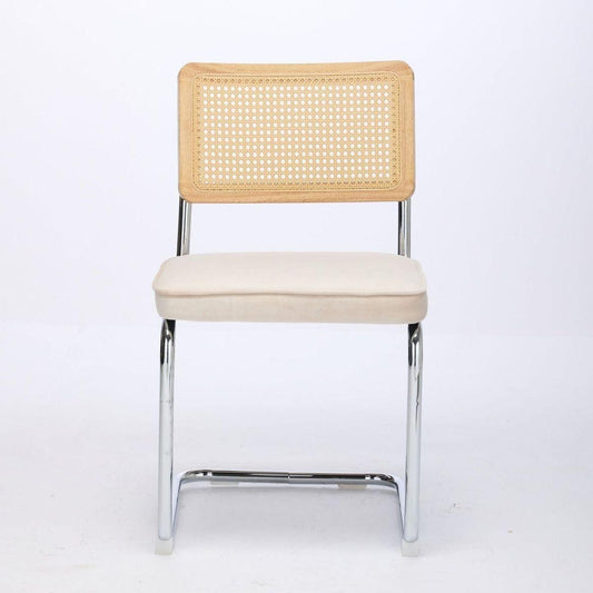 Mid Century Modern Dining Chairs Set of 2, Velvet Accent Chairs with Natural Cane Back & Stainless Chrome Base, Famous Breuer Designed Chairs, Upholstered Rattan Kitchen Chairs,Beige