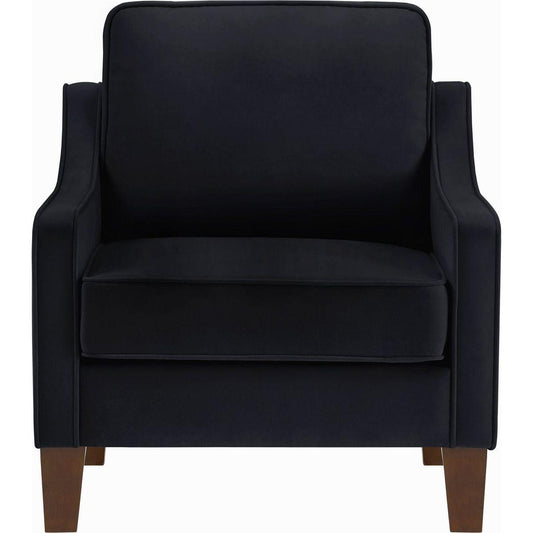 Modern Armchair, Living Room Single Seat Sofa Chair with Wooden Legs, Upholstered Velvet Accent Chair for Living Room, Bedroom,Black