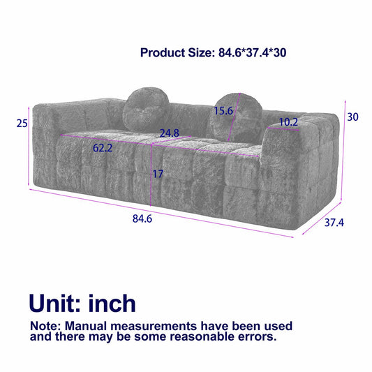 Modern Boneless Couch with Two Circular throw pillows,Skin-friendly lychee-textured long-pile polyester fabric,Checkered Fabric Design Foam Sofa