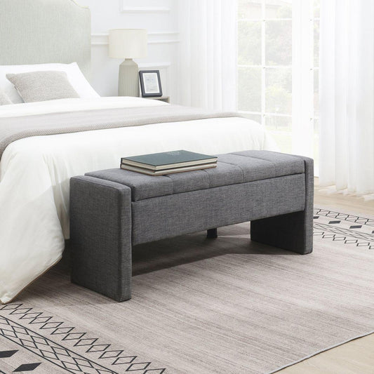 Modern Bed End Bench with Storage,Upholstered Large Foot Rest Stool, Comfy Window Vanity Bench for Living Room,Bedroom,Dorm,Coffee Table,Linen Dark Grey