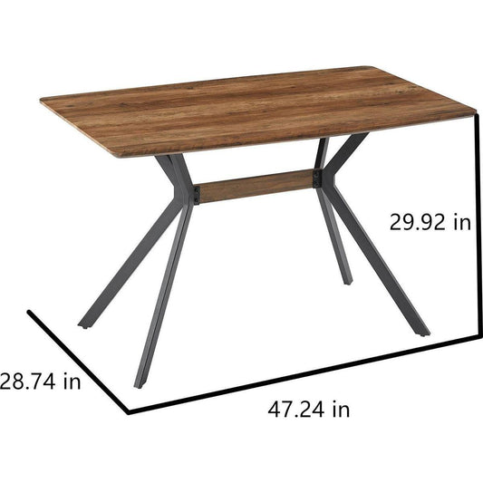 Modern minimalist wood grain tabletop dining table and chair 4-piece set, stylish dining table, kitchen dining table, sturdy and durable, easy to assemble, black metal leg design, suitable for 4-6 peo