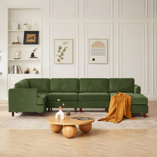 Modern Modular Sectional couch,6 Seaters Sleeper Sofa Upholstered Corduroy Free Combination Sofa(Green)