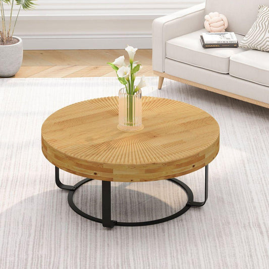 Modern Round Coffee Table Set – Dual Table Combination with Unique Fluted Table Leg Design, Stylish Living Room Furniture